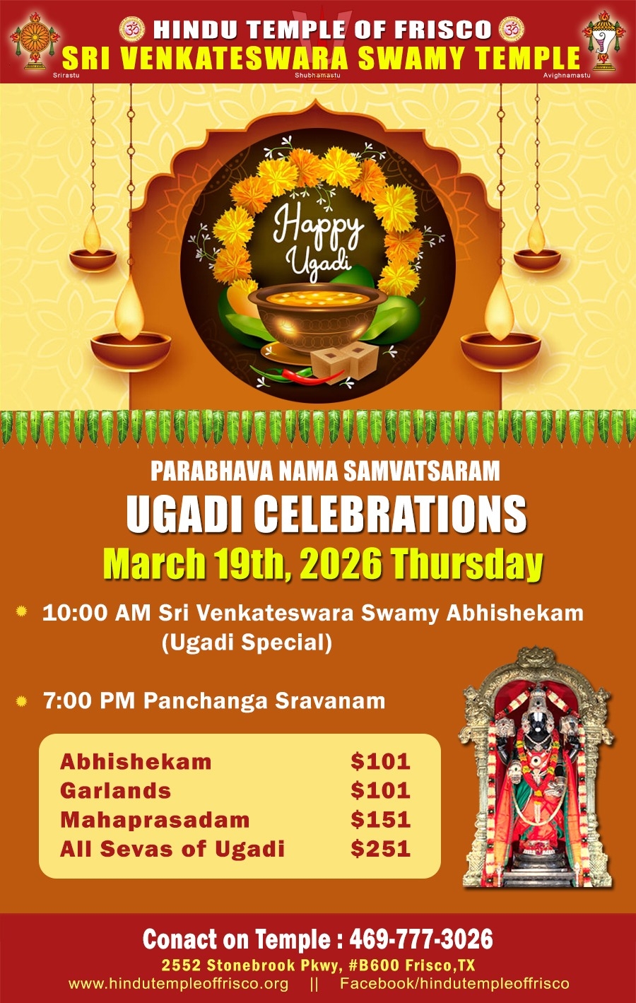 Copyrights ©2019 Hindu Temple of Frisco, All Rights Reserved